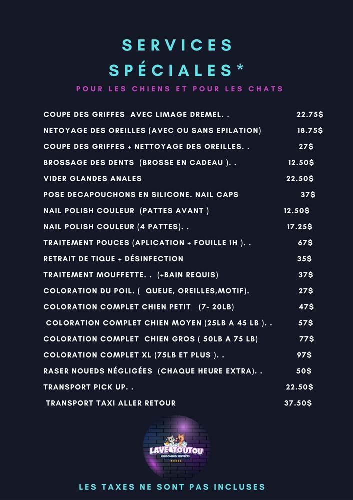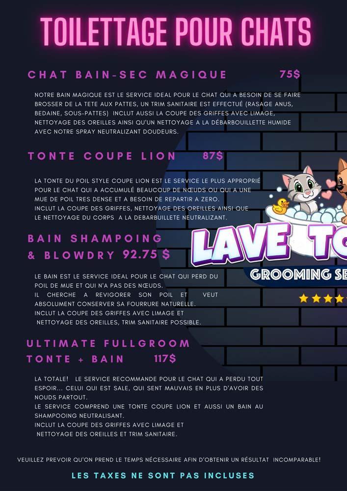 Lave Toutou Toilettage specializes in dog and cat grooming. The company is located in Montreal South.